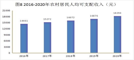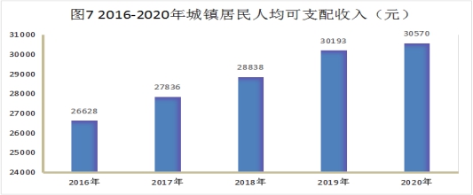 2020年地区城镇居民人均可支配收入30570元,增长1.2%。农村居民人均可支配收入18290元,增长8.4%。