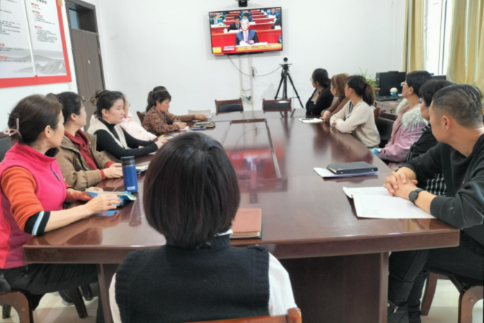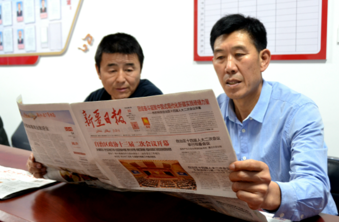自治区两会召开后,沙湾市乌兰乌苏镇黄家梁新村党员干部通过报纸、电视、手机客户端学习了两会精神。