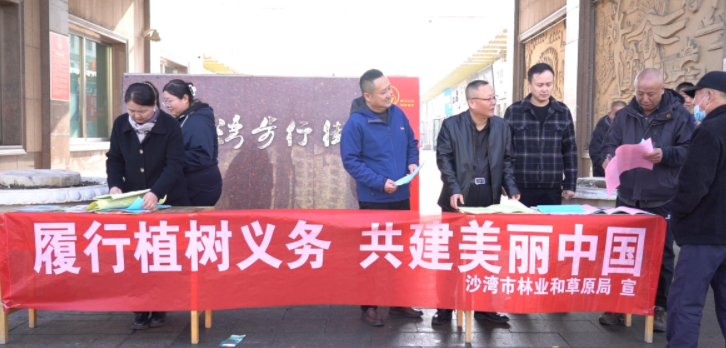 今年3月12日是第46个“植树节”,沙湾市林业和草原局开展了“履行植树义务 共建美丽中国”主题宣传活动。宣传员们向市民们发放传单,发起植树造林倡议,并向市民们解读《中华人民共和国森林法》,引导广大市民朋友参与全民义务植树和生态环境保护,努力营造全社会植绿、爱绿、护绿、兴绿的良好氛围,形成人人参与绿化建设的良好局面。