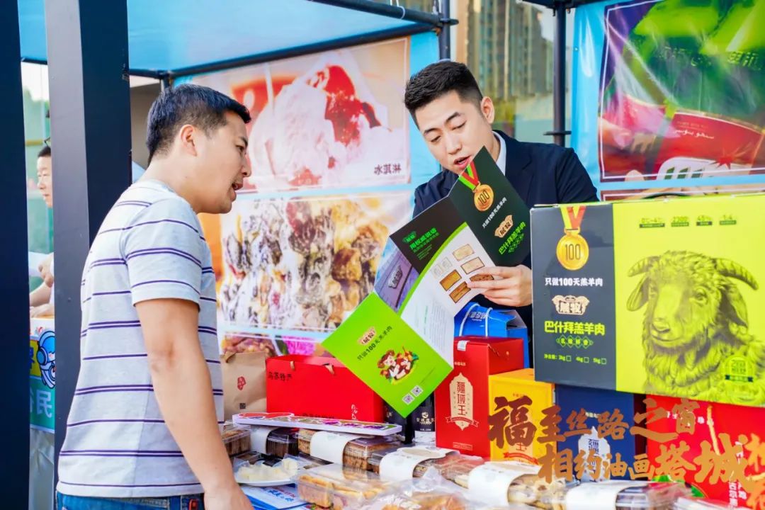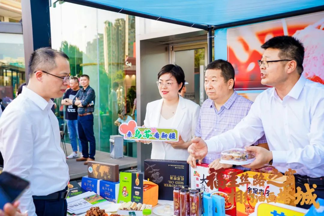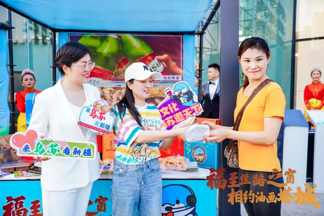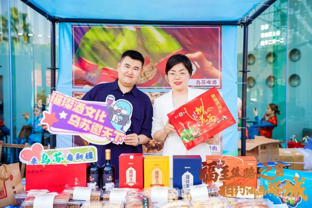除了精彩的歌舞表演,推介会现场搭建文旅市集,展示塔城地区特色文旅产品、伴手礼,包括巴什拜羊肉、酸梅汤、糕点、优盘等,福州推介会现场以塔城美食为亮点,邀请观众参与套圈游戏,赢取丰厚奖品。