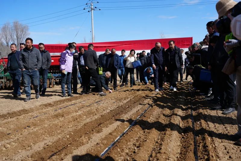 塔城地区农业农村局机械化发展中心主任贾朝阳说:“现场演示会目的是为了深入贯彻落实中央一号文件提出的‘实施千亿斤粮食产能提升行动’目标任务。我们从两方面来抓,一是耕地质量提升,采用分流式整地机和动力驱动耙联合作业提高整地质量;二是精量播种,有两种方式,一个是缩行增密,由传统的24行播种机改为32行。另一个是种肥分施,48行播种机采用24行播种、24行播肥,通过这两种模式的对比总结出一个比较好的模式来进行推广,为粮食单产提升打基础。”