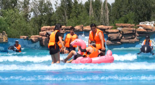 沙湾市冰凉一夏水上乐园吸引众多游客前来打卡享清凉。塔城地区融媒体中心通讯员马金明摄