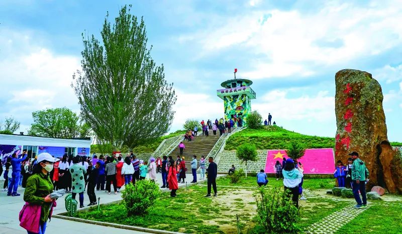 游客在裕民县小白杨哨所参观。裕民县融媒体中心供图