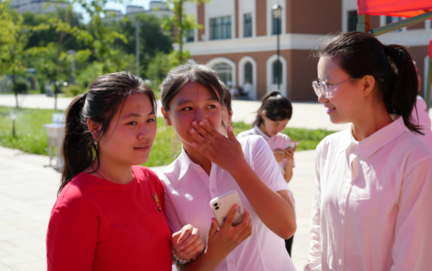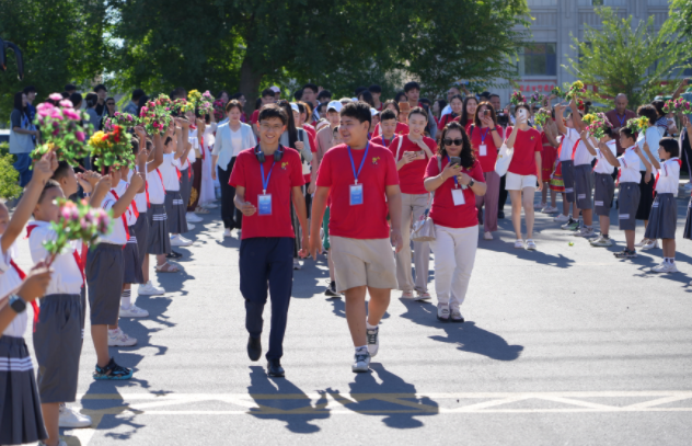 上午10时许,塔城市教育系统师生在学校门前广场对海外华裔青少年夏令营一行的到来表示热烈欢迎,他们用鲜艳的花束和饱满的热情欢迎远方的朋友。走下大巴,海外华裔青少年们的脸上洋溢着兴奋与期待的笑容。