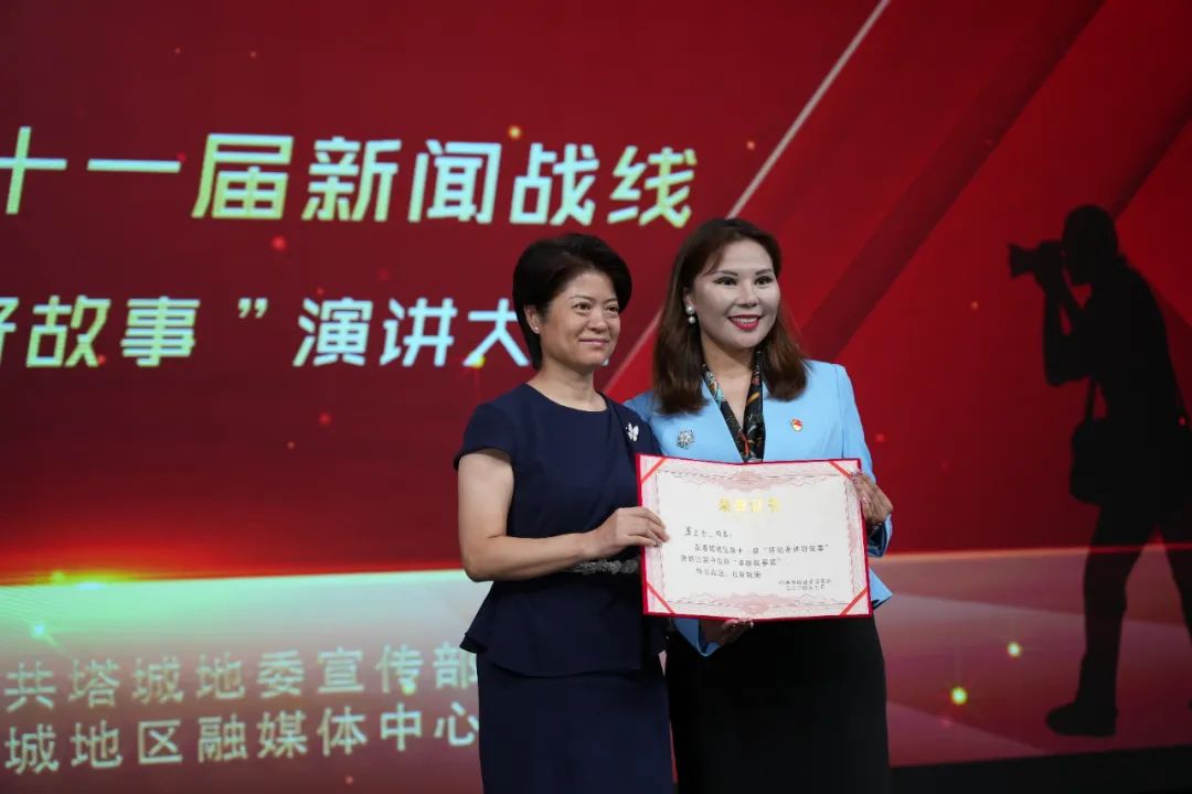 卓越叙事奖。塔城地区融媒体中心记者马合巴勒·木尔扎汗摄