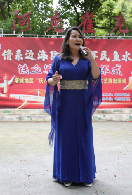 “为丰富部队官兵的精神文化生活,塔城地区石榴籽文化文艺小分队走进阿克雀克边防连开展演出活动,在炎炎夏日为官兵带来了精彩纷呈的视听盛宴,演员们通过文艺的力量,将双拥传统薪火相传,发扬光大,把文化送进军营,将党和政府的关怀传递到每个部队官兵心间。”塔城地区歌舞团演员杨雅钧说。