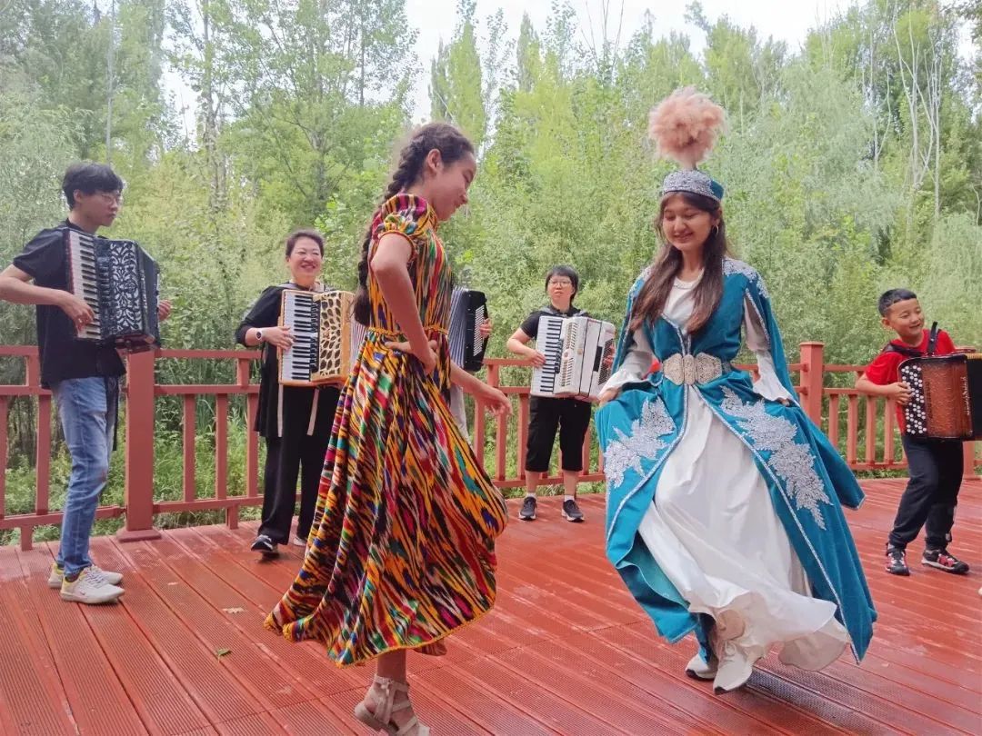 塔城市第三中学学生马慧说:“今天听了北大手风琴协会的哥哥姐姐分享的学习经历,让我深受启发。只要坚定地追逐梦想,就能够做好每一件事情。我要以他们为榜样,努力前行,继续走好我的手风琴之路。” 当天,北京大学手风琴协会的成员还在塔城市快活园举行了一场交流互访活动。