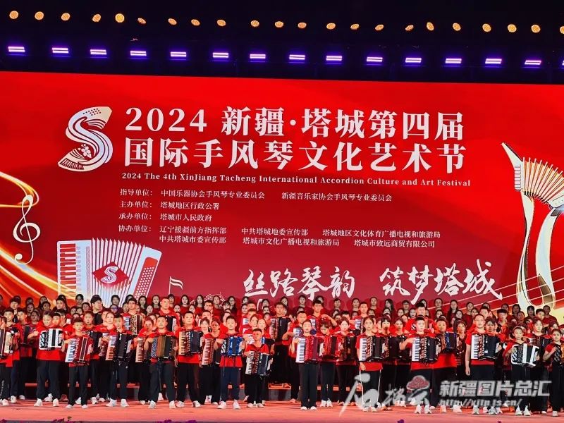 8月17日,塔城市举行“丝路琴韵·筑梦塔城”2024新疆·塔城第四届国际手风琴文化艺术节“琴润塔城”手风琴交流晚会暨千人伴奏万人合唱活动。王杰摄