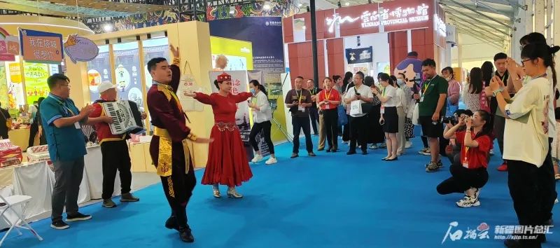 欢快的歌舞和激荡人心的旋律瞬间点燃博博会现场。石榴云/新疆日报记者贾春霞摄