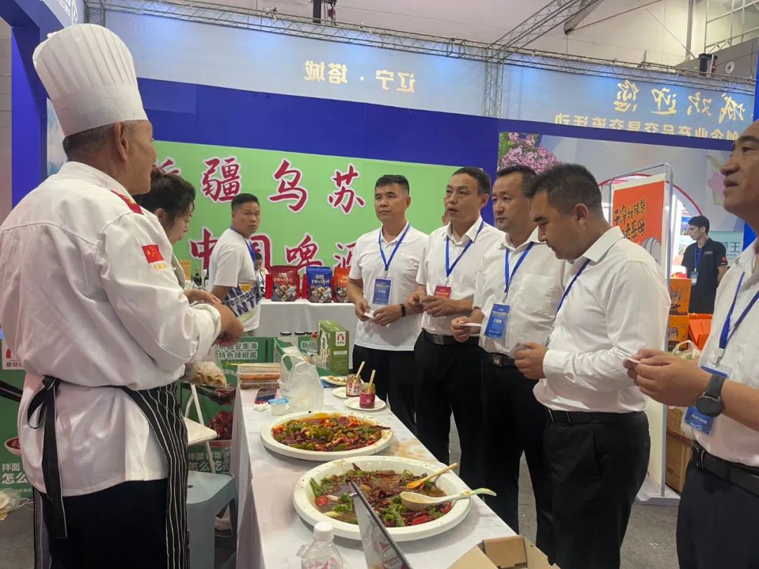 辽宁·塔城展馆内的产品琳琅满目、种类繁多,吸引众多参观者驻足观看、品尝,曾登录《舌尖上的中国》的沙湾大盘鸡和安集海辣椒酱,有“喝山泉水、吃中草药”的裕民巴什拜羔羊肉,还有风味浓郁的塔城纯手工炒制牛肉干、乌苏市牛沫王精酿啤酒、托里县豆制品、和布克赛尔县天然含硒盐、额敏县冬小麦粉等特色产品。