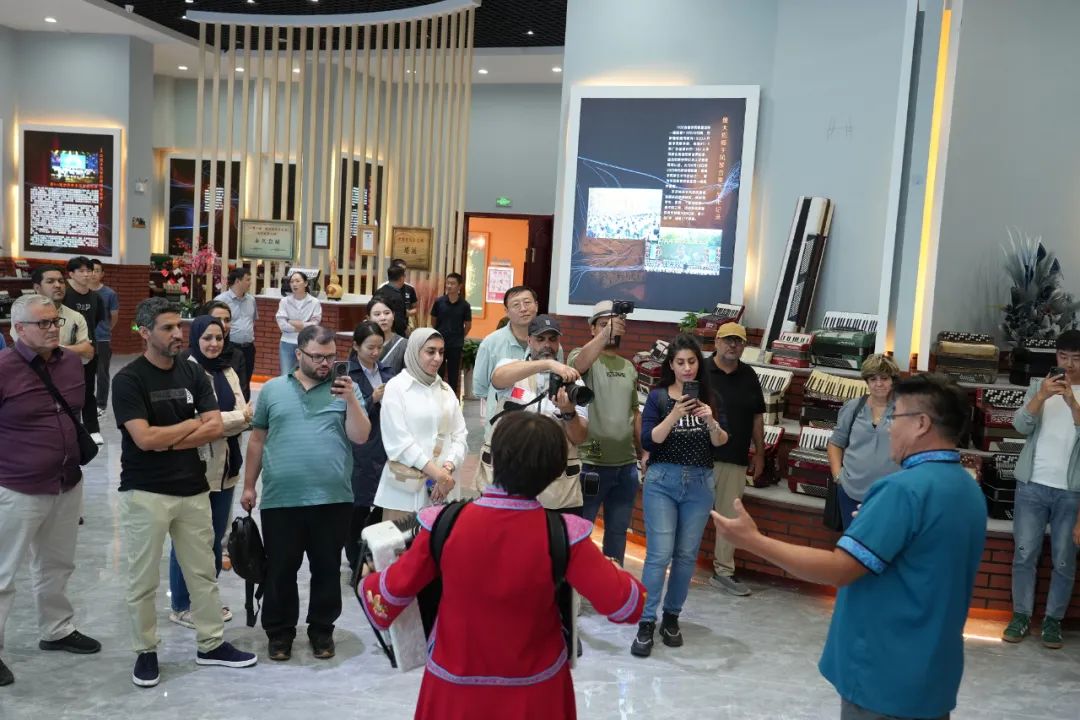 考察团一行参观塔城市手风琴文化展示厅。塔城地区融媒体中心记者阿拉新·素德别力克摄