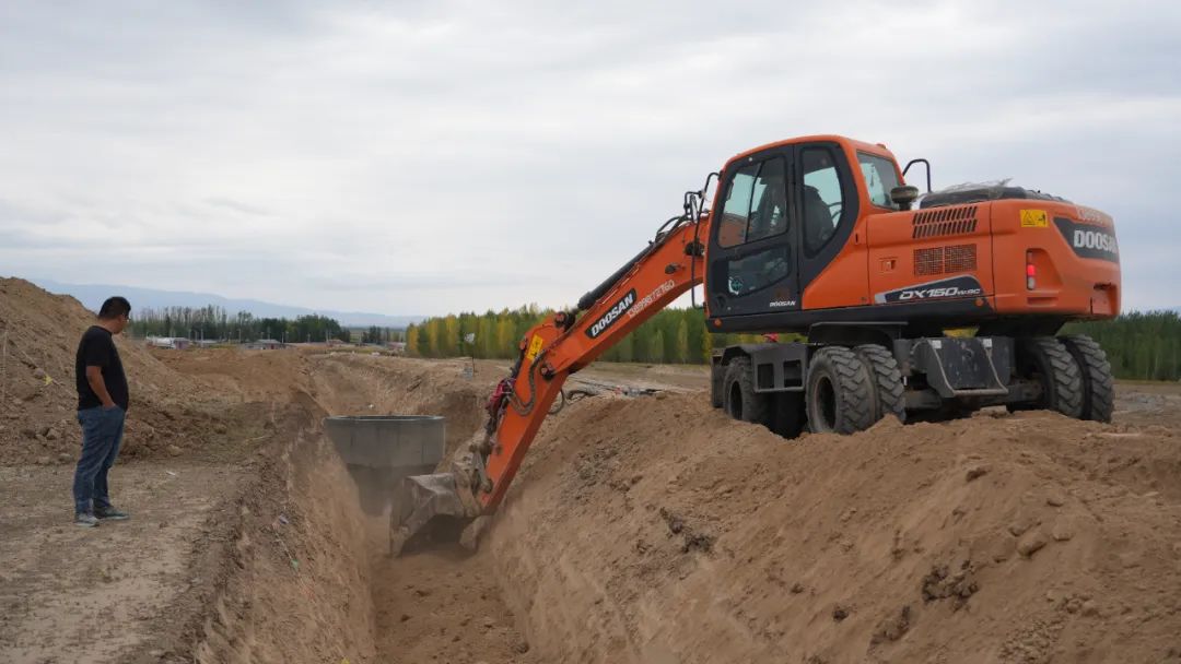 穿路顶管施工。塔城地区融媒体中心记者苏珊琳摄