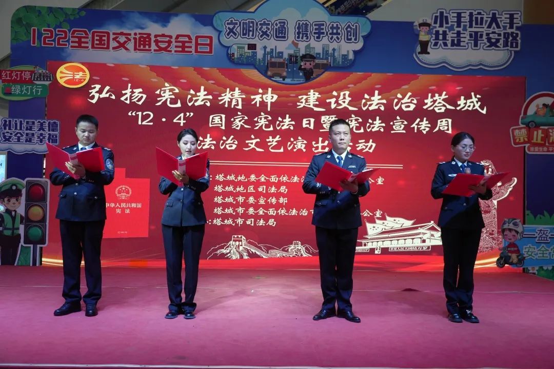 今年的12月4日是第十一个国家宪法日,12月1日至7日是第七个宪法宣传周。当日,塔城地市司法部门、市委宣传部联合政法部门在塔城卓悦百盛购物公园一楼举办“弘扬宪法精神 建设法治塔城”12·4国家宪法日暨宪法宣传周法治文艺演出活动。