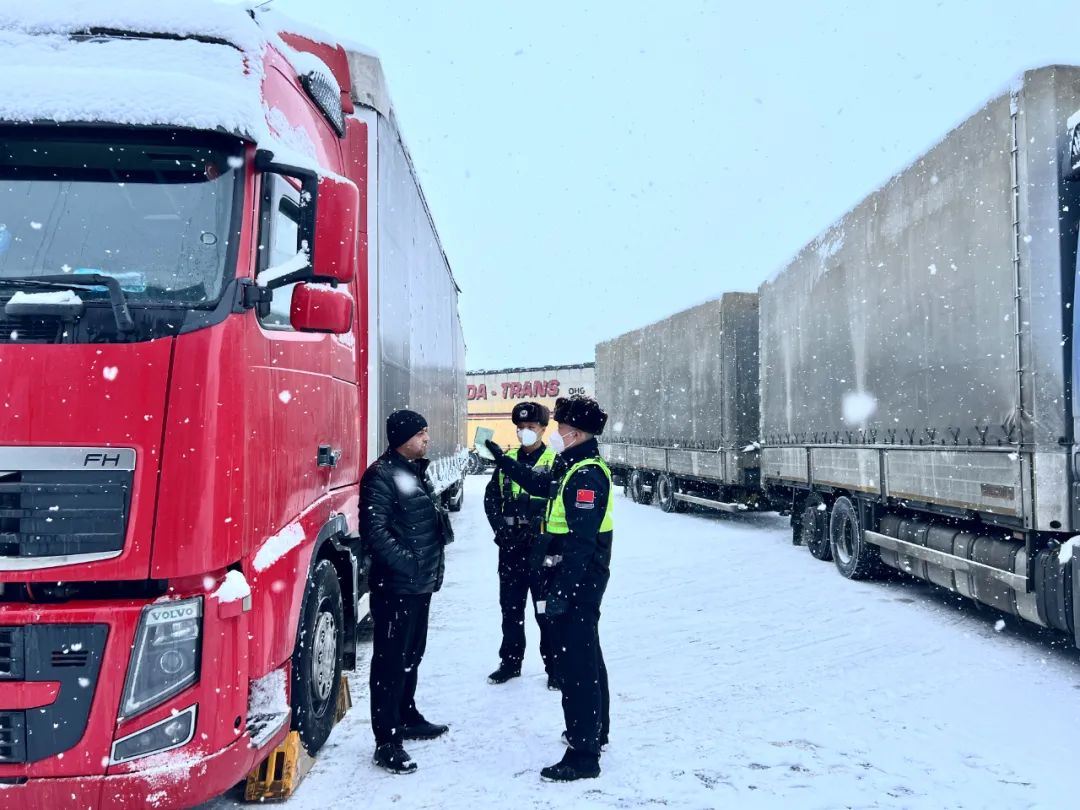 巴克图出入境边防检查站:雪天保障车辆高效快速通关