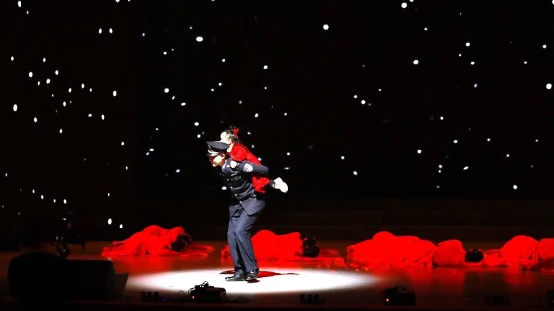 参与度广,科技感足,融合性强是这场晚会的最大特色。活动现场气氛热烈,灯光璀璨,座无虚席。演出在开场舞《只此藏蓝》中拉开序幕,整场晚会以微电影和话剧人物贯穿全程,将各单位精彩节目汇聚成“兵地公安五年历程”总剧情,让现场观众沉浸式体验祖国西北边陲的感人警察故事。