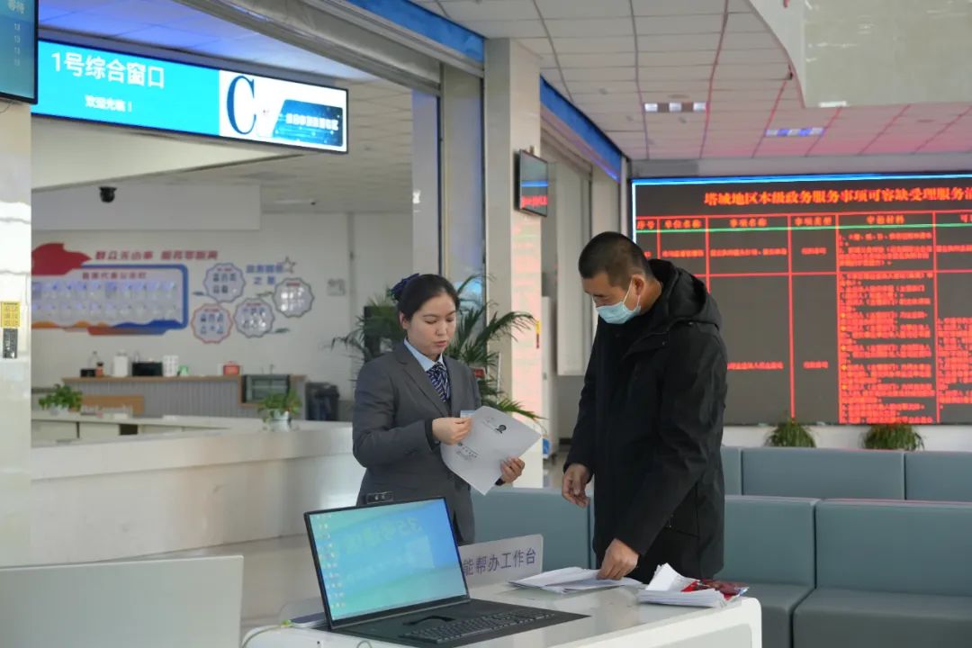 工作人员耐心接待办事的群众。塔城地区融媒体中心记者王婷摄