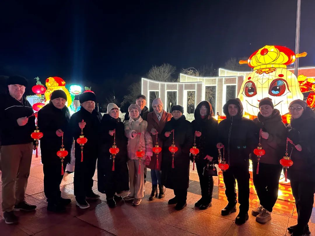 哈国游客欣赏花灯。塔城地区融媒体中心记者阿拉新·素德别力克摄