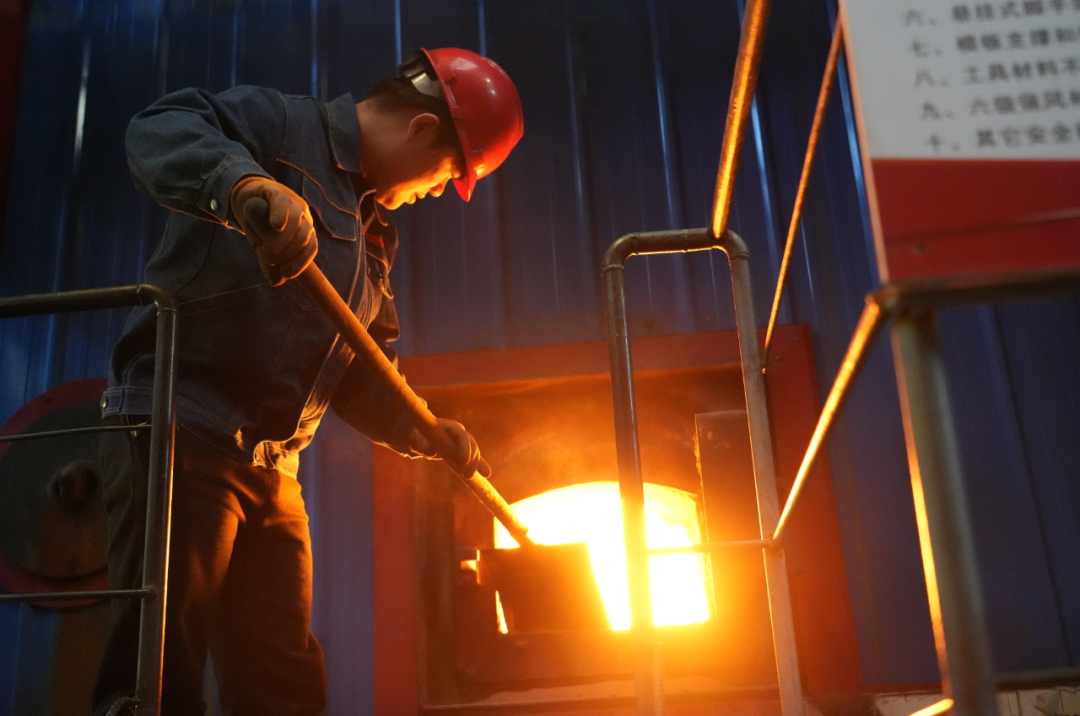 塔城市天诚热力有限公司的工作人员清理火炉边灰尘。塔城地区融媒体中心记者阿拉新·素德别力克摄