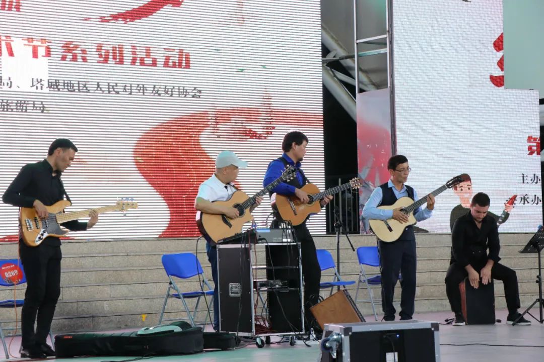 中哈两国吉他手合奏。塔城地区融媒体中心实习记者迪拉热·木合亚提摄
