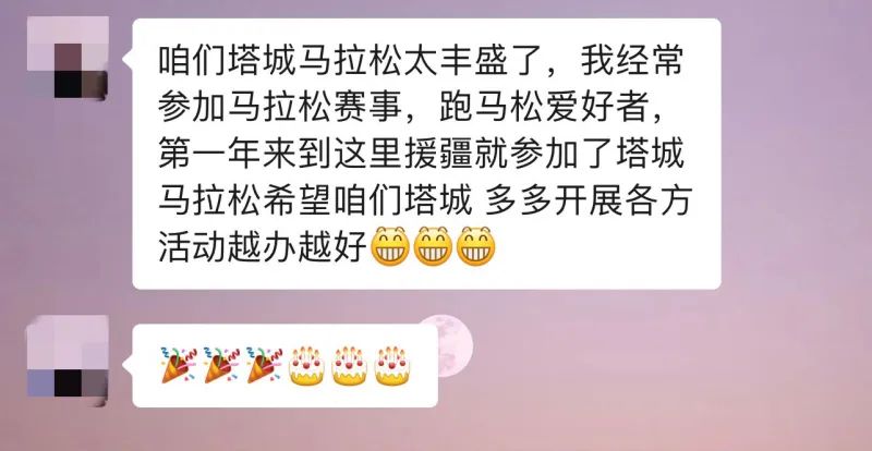 “参加过这么多马拉松赛事,这还是第一次遇到这么有创意、这么暖心的设计。感觉不是在参加一场比赛,而是在和一群志同道合的朋友共同赴一场团体旅行,共度一个特别的生日派对。”8月12日,来自北京的跑友李强说。