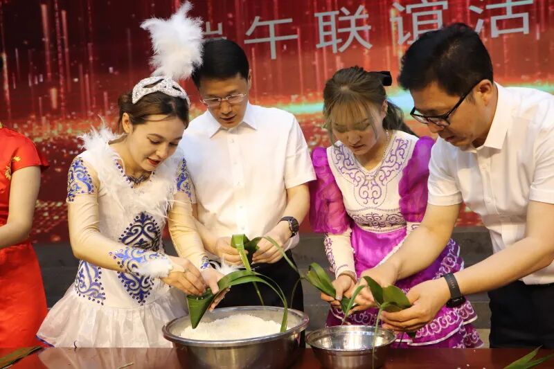 端午联谊活动中各族师生包“团结粽”。塔城职业技术学院提供