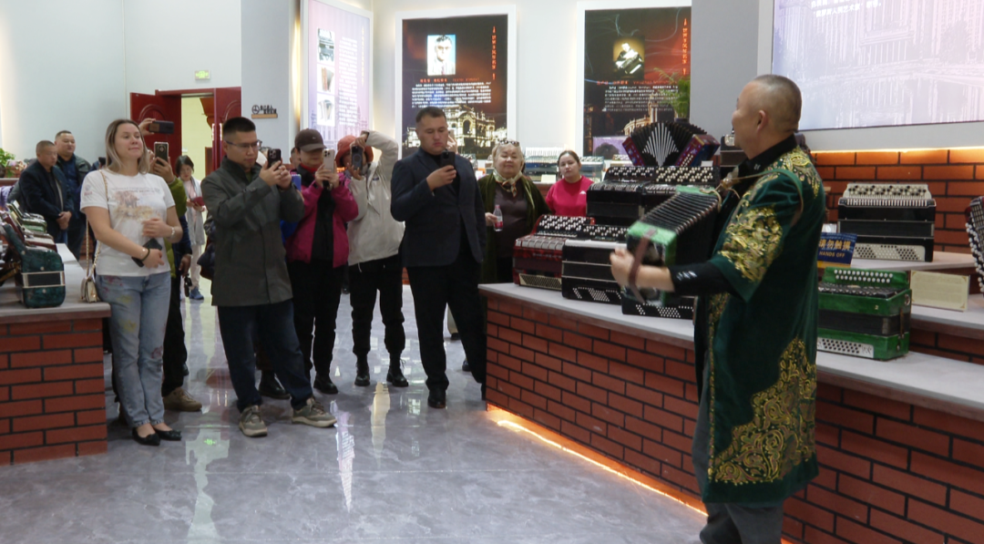 在塔城手风琴文化展厅,中外嘉宾沉浸式感受这座边境城市独特的音乐文化魅力,开启一场跨越国界的“琴声对话”。