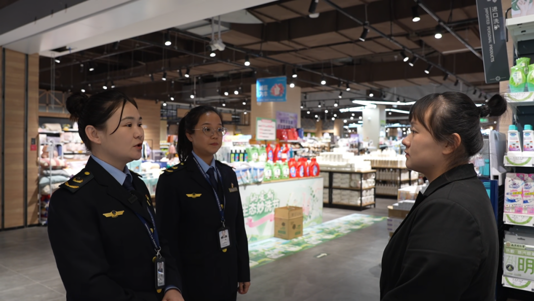在塔城市一家超市内,塔城市市场监管局合作区监管所科员古丽扎提·塔比哈提正带领执法人员开展整改“回头看”:“您好,我们是塔城市市场监督管理局执法人员,这是我们的执法证。前期接到12345热线反映的问题,您超市已完成整改,今天来回访核查落实情况。”