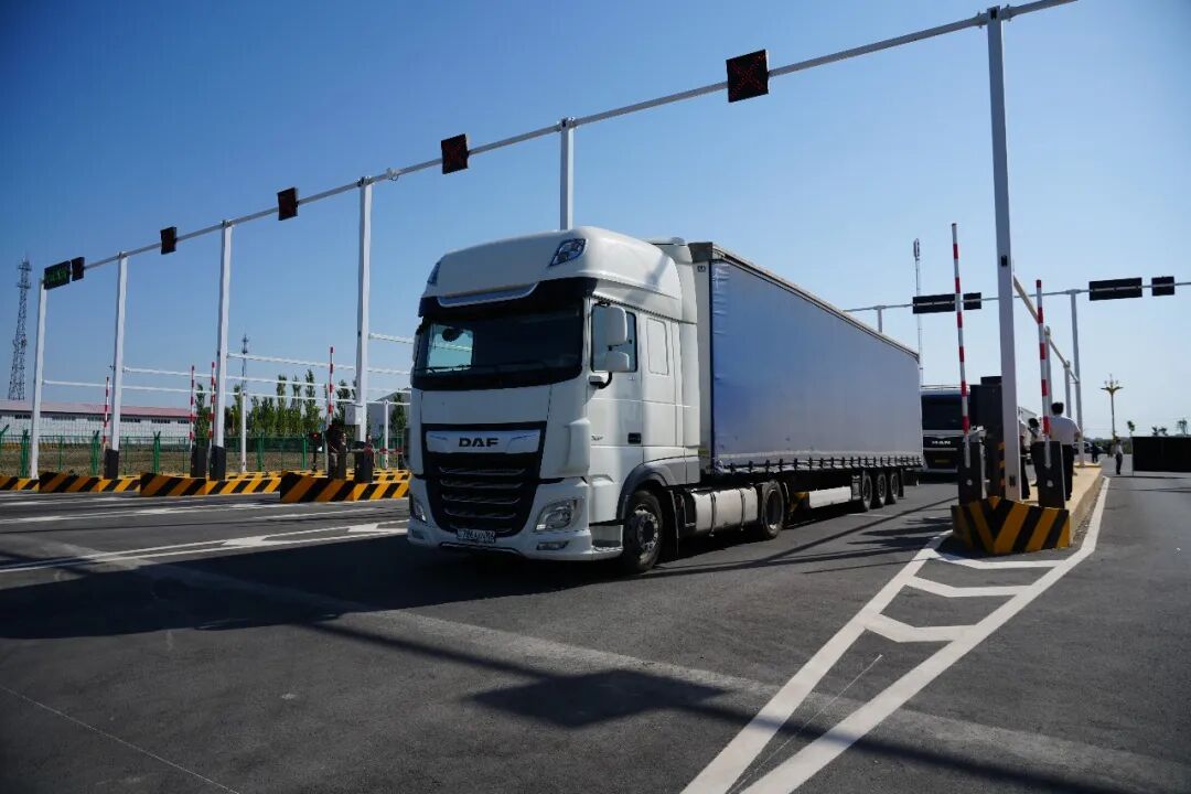 巴克图口岸出境车辆通过集中查验中心出境入场卡口。