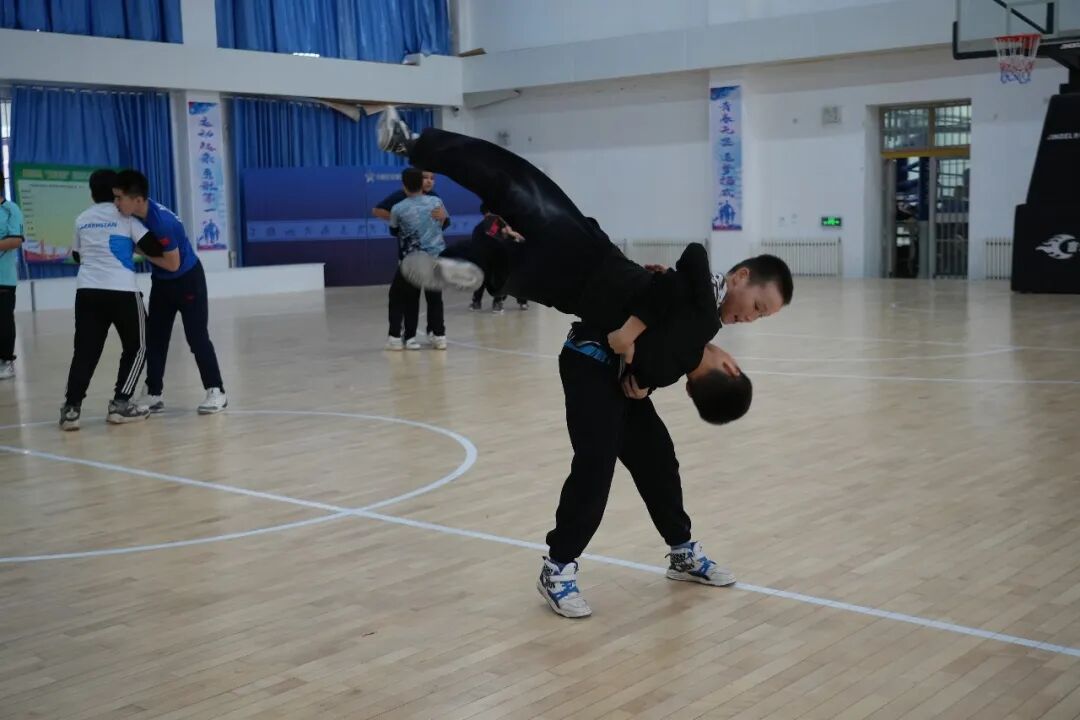 摔跤训练中。
