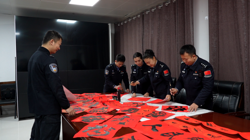 “人民警察为人民”“国泰民安戍边关,春和景明耀警营”“忠诚卫国门,热血铸警心”,这些由巴克图出入境边防检查站民警书写的春联,既饱含着对祖国繁荣昌盛的美好祝愿,也彰显着移民管理警察忠诚履职的戍边情怀,让原本严谨规范的大厅,多了几分家的温情与暖意。