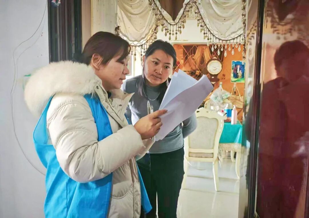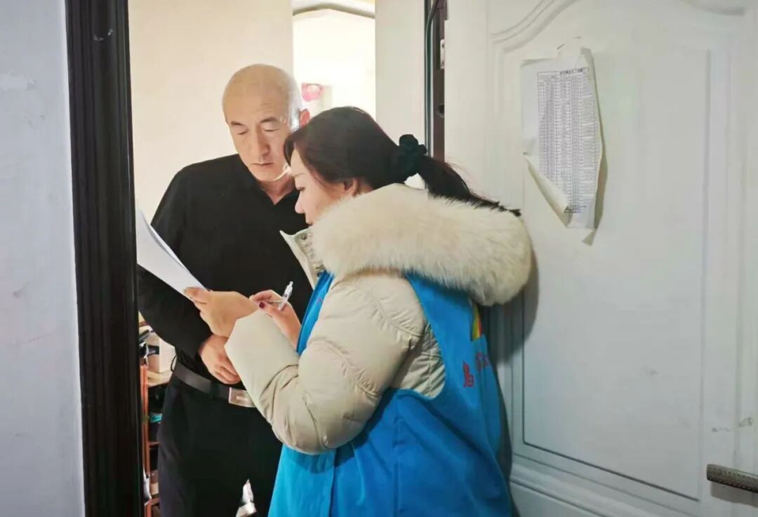 社区工作人员上门开展志愿服务。