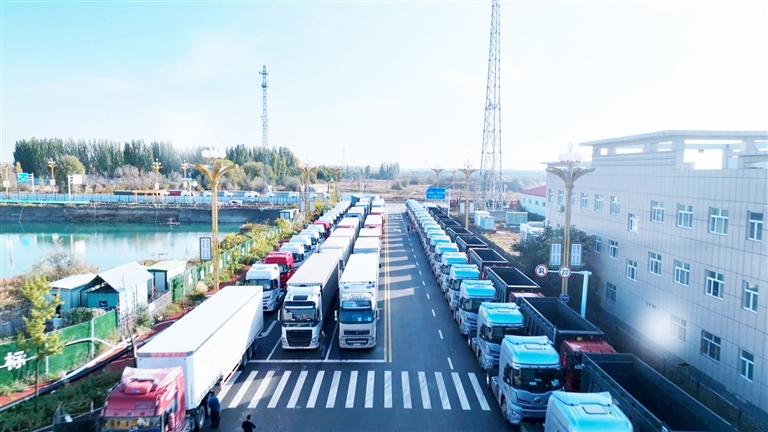 □塔城巴克图口岸中哈边民互市货物运输现场。 (本报资料图片)