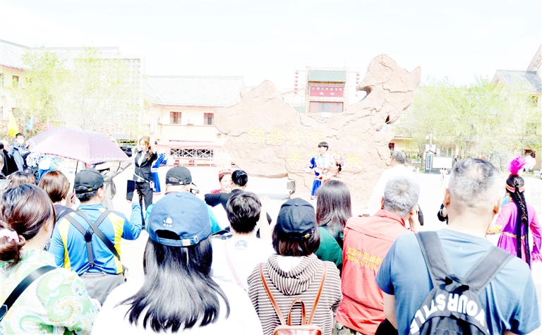 □5月2日,游客到沙湾大盘美食城感受大盘美食文化。 本报记者宋建亮摄