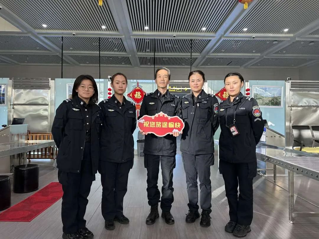 工作人员祝旅客旅途愉快。