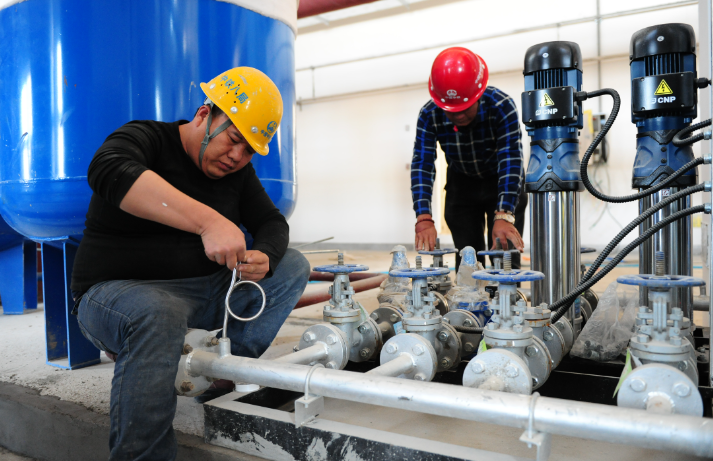 9月23日,在新疆塔城重点开发开放试验区供热配套项目施工现场,工人们正在抓紧时间进行电锅炉房设备安装及调试,确保供热配套项目尽快完工。