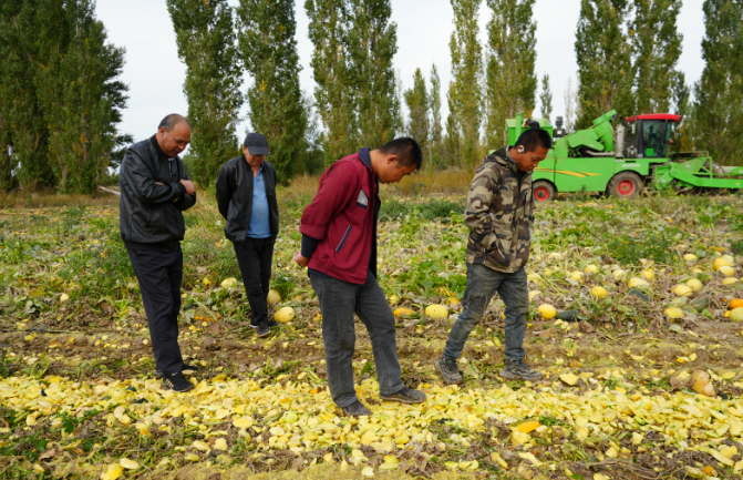 额敏县种植户杨波今年种了1000亩籽用葫芦和南瓜。为此,他也购买了一台自走式籽瓜收获机。杨波说:“通过今天的机采观摩会,广大种植户和农机手学到了不同机械的工作原理,今天也来了很多厂家,通过今天的观摩,收获很多。”