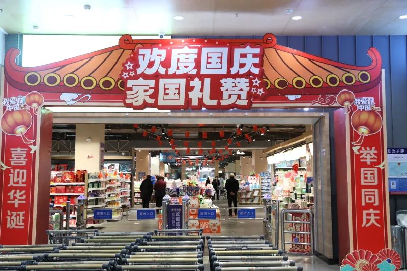 走进塔城市卓悦百盛购物公园,只见处处挂满了鲜艳的国旗,红色的气球,商铺上“庆国庆”的标识牌随处可见,浓浓的节日气氛扑面而来。