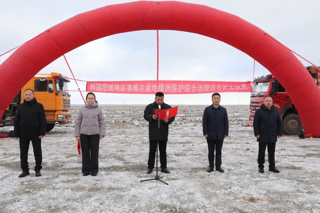 塔城地区2024年准噶尔盆地绿洲保护综合治理项目开工仪式现场。