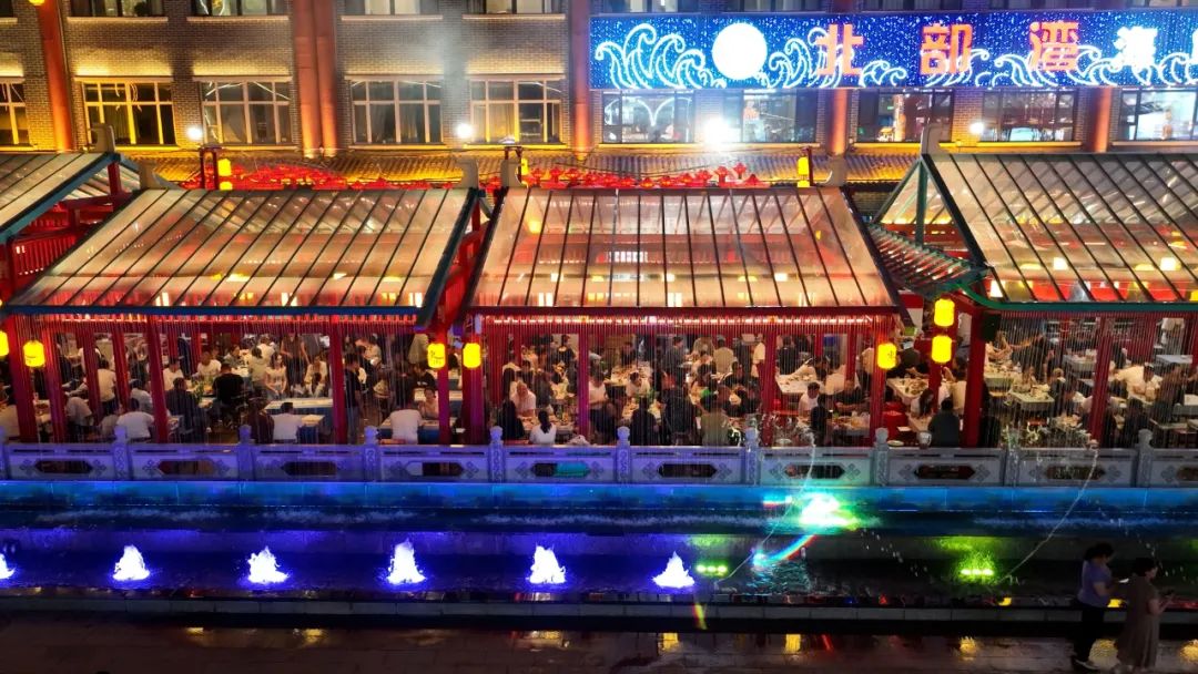 夜市2019年开始改造,总投入4800万元。增加了60米的水帘摆泉、水幕秋千和音乐喊泉娱乐业态。所有商铺全新升级为钢结构古风古韵式透明顶篷房。
