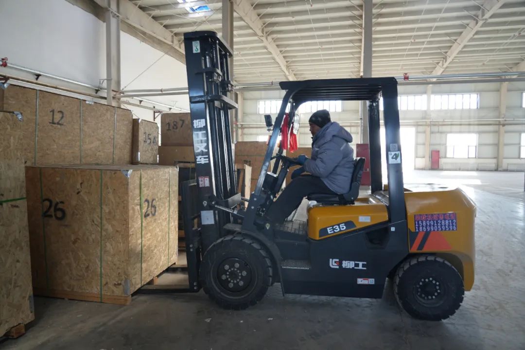 工人正在卸生产设备。