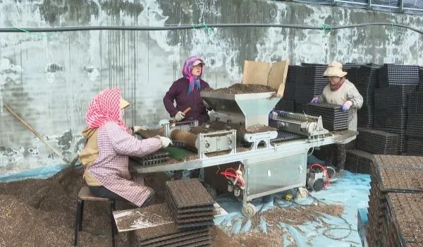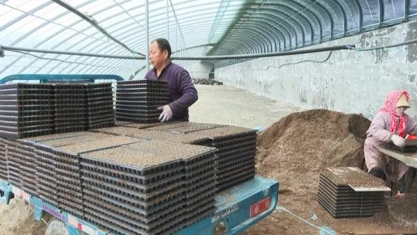 在棚里务工的工人陈秀兰说:“到育苗的时候,我平常主要负责培土、装盘、移苗等,平均每天能挣150元,离家近,可以照顾家庭,很满足。”