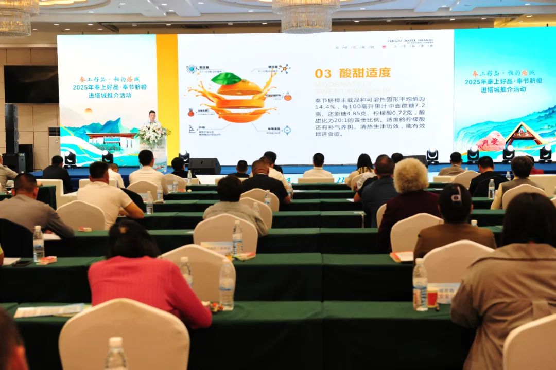 推介活动中,播放了奉节脐橙、招商引资和奉节文旅宣传片,并对重庆市奉节县脐橙产品进行重点推介。