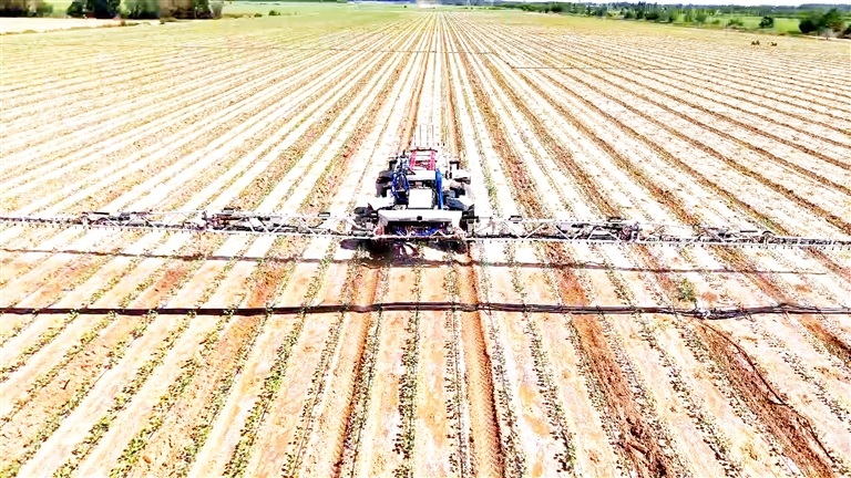 机器人助力 农业节本增效 2025-05-22 10:56:15 塔城零距离 点击:[] 打印 分享到: 5月18日,沙湾市金沟河镇兴奋村农业试验站棉田里,一款由觉物科技(深圳)有限公司自主研发的“鹤出”T3000机器人来回穿梭作业,一个多小时精准完成了200多亩棉花的施药工作。据了解,此款机器人集成人工智能、自动驾驶与大数据技术,以数字化、无人化模式为种植户提供 “耕种管收”全流程服务。每小时作业可达216亩,覆盖施肥、除草等多场景作业;1人能操控5台机器人进行集群作业,大幅提升效率、节省人力、降低劳动强度。 【关闭】