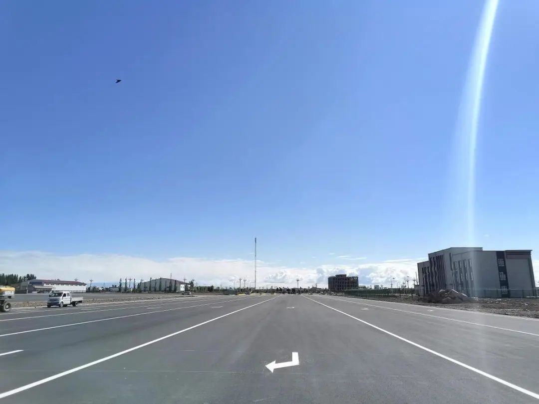 (图为巴克图口岸新增的50米宽八车道。朱歆柯穆摄)