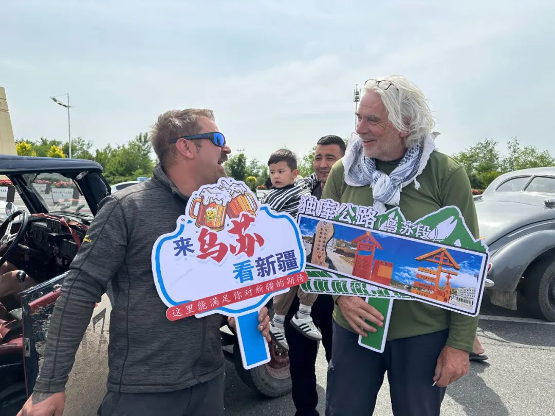 在乌苏市,全球16个国家近百余辆经典老爷车组成的“2025北京—巴黎国际体育老爷车自驾旅游车队”途经驻留。