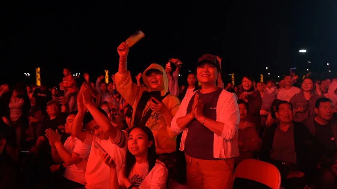 第十九届新疆塔城·裕民山花节开幕式现场,观众正在拍手鼓掌。