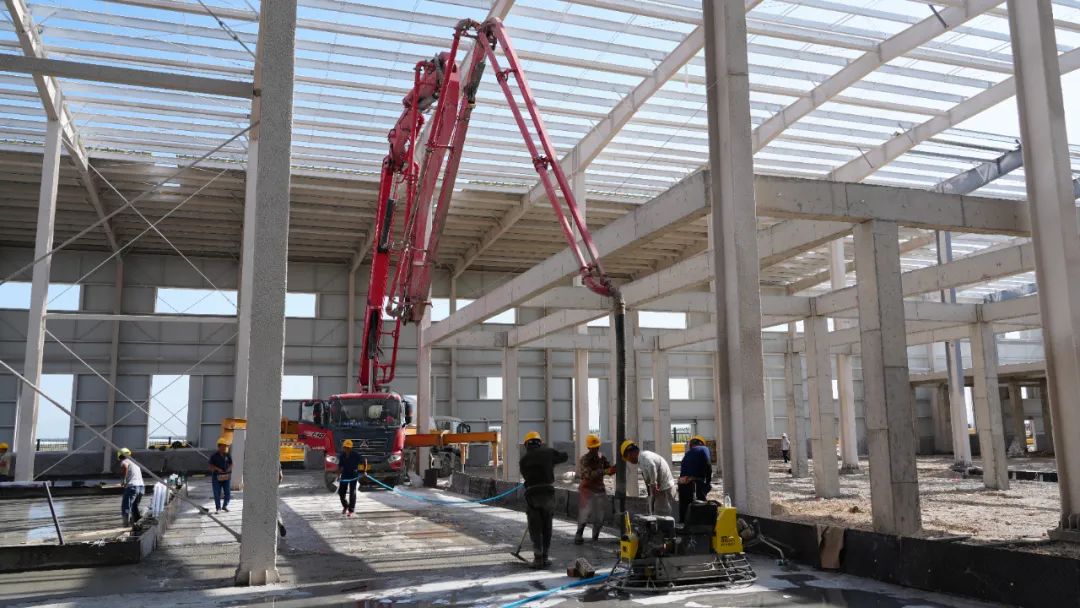 标准仓储库地坪混凝土浇筑。塔城地区融媒体中心记者王高升摄