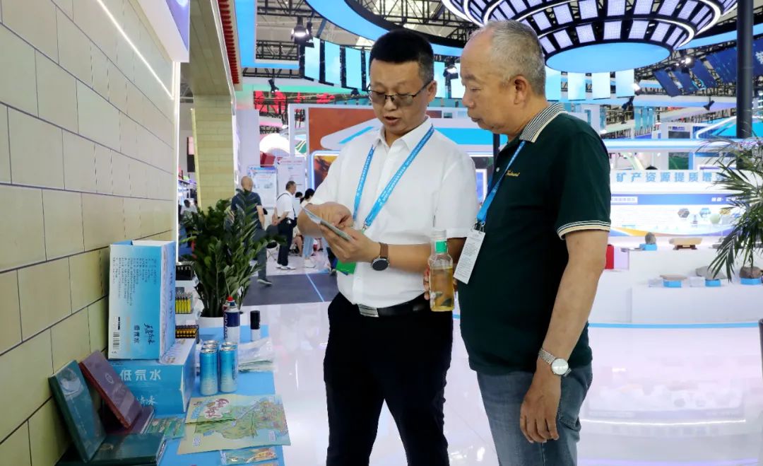 客商走进特色产品展柜了解产品信息。