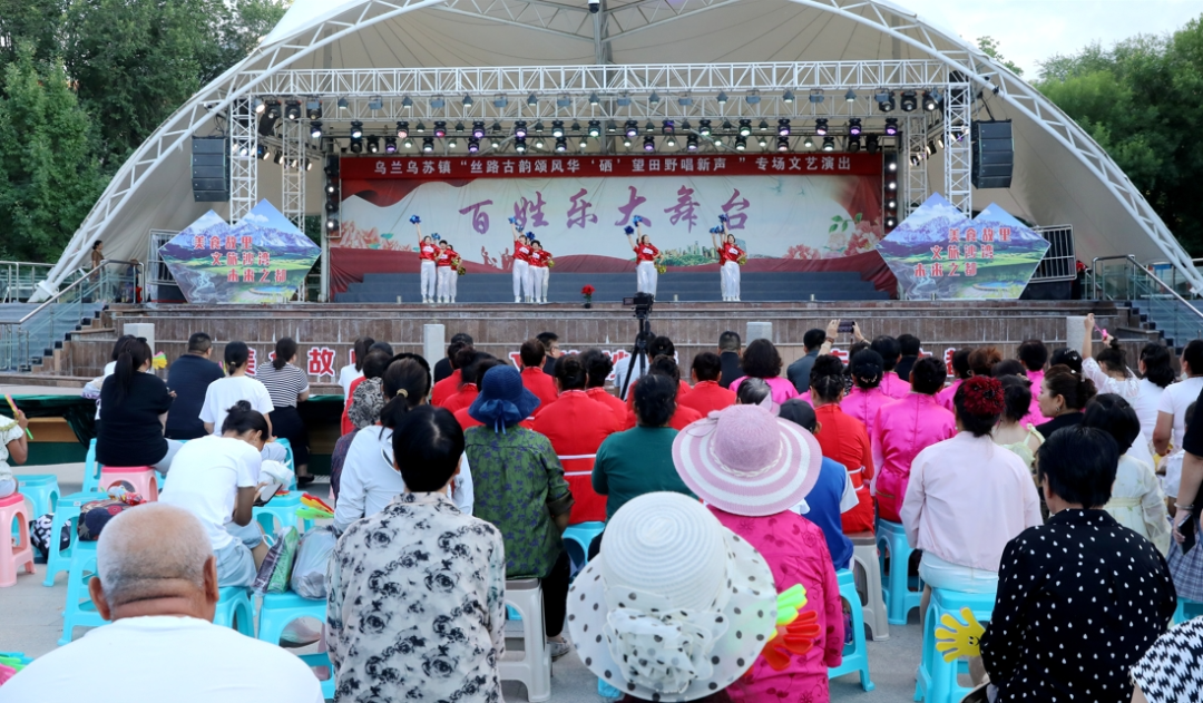 7月8日晚,沙湾市乌兰乌苏镇专场文艺演出活动在沙湾市文化广场开演,此次活动以“丝路古韵颂风华 ‘硒’望田野唱新声”为主题,旨在以文化为纽带,丰富群众文化生活,展现乡村振兴强劲动力。