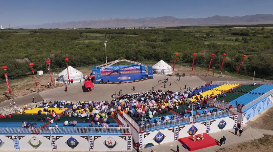 在和布克赛尔蒙古自治县举办的塔城地区阿肯阿依特斯民俗文化旅游活动现场。